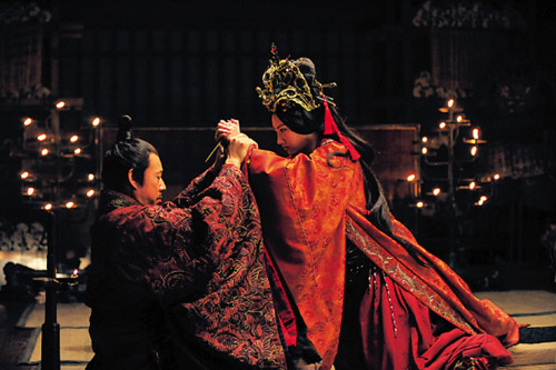 十余年沒有踏入影視劇組的歌手孫悅這次扮演女二號(hào)楚國(guó)公主,刻畫心理的戲份占很大比重。孫悅說(shuō):“我的戲大多要借助眼神、動(dòng)作等細(xì)微的東西去表達(dá),對(duì)我這樣一個(gè)非科班出身的人來(lái)說(shuō),確實(shí)很不容易!睂O悅坦言,拍第一場(chǎng)戲時(shí),因?yàn)槟槻勘砬椴坏轿,要求?yán)格的劉心剛讓她一個(gè)鏡頭拍了一個(gè)多小時(shí)才通過。因?yàn)槭枪叛b戲,臺(tái)詞全是文言文,孫悅說(shuō)自己吃飯、走路甚至做夢(mèng)都在背臺(tái)詞。“文言文臺(tái)詞得一字不落地說(shuō)出來(lái),不像現(xiàn)代戲改個(gè)詞也不會(huì)有太大問題!北緢(bào)記者 余姝 文/圖