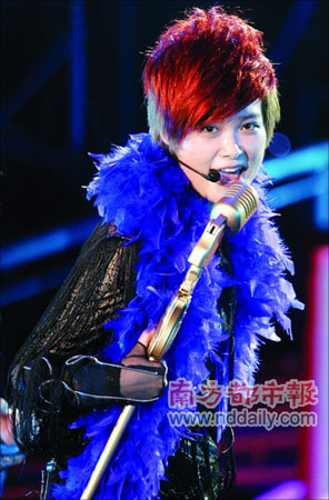 當(dāng)晚李宇春換了八套衣服。沒錯(cuò),華麗的、帥氣的造型觀眾都不陌生,可是耍可愛足夠新鮮了吧?五彩繽紛的泡泡滿天飛揚(yáng),奶瓶、枕頭是李宇春的道具,動(dòng)畫片《喜羊羊與灰太狼》和《藍(lán)精靈》的主題曲愉悅地響起……尤其是當(dāng)她戴著“熊貓”的帽子,邊彈鋼琴邊唱歌時(shí),歌迷興奮地手舞足蹈,站起來大叫:“春春,你好可愛!”