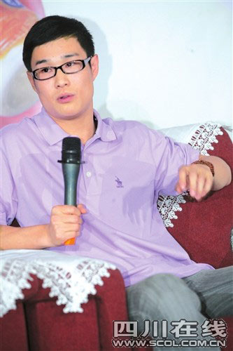當(dāng)書卷氣十足的“小沈陽”上臺(tái)向觀眾鞠躬時(shí),現(xiàn)場(chǎng)立即爆發(fā)出熱烈掌聲。女主持首先教“小沈陽”學(xué)說幾句成都話“好巴適哦!“巴適得板!”“巴適得慘”!“巴適得憨!”僅教了兩次,“小沈陽”就一口氣用正宗四川話說出來,逗得現(xiàn)場(chǎng)觀眾和記者哄堂大笑。緊接著,女主持又讓“小沈陽”跟她現(xiàn)場(chǎng)學(xué)唱四川民歌《康定情歌》!靶∩蜿枴本挂浴岸宿D(zhuǎn)”的形式翻唱,現(xiàn)場(chǎng)又是一陣笑聲。