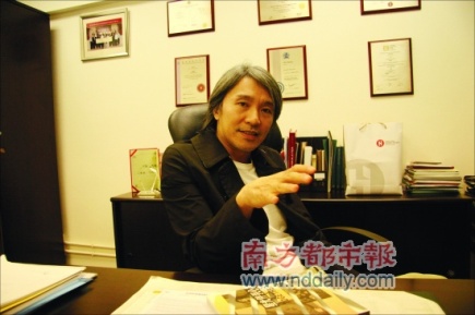 25日晚上九點(diǎn)鐘在寫字樓找到星爺。是他約在這個(gè)地點(diǎn)見(jiàn)面的,他和同事開(kāi)會(huì)還沒(méi)結(jié)束,但為了這次是非,不得不見(jiàn)一見(jiàn)記者。當(dāng)記者在他的辦公室見(jiàn)到他時(shí),星爺一面倦容,滿面須根,問(wèn)他是否受到打擊,情緒落寞,不修邊幅?