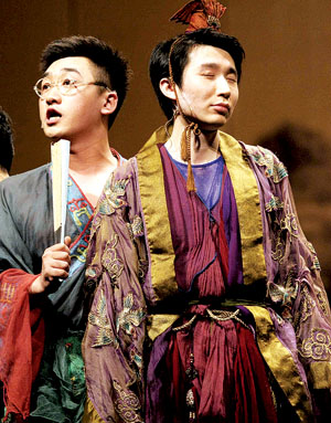 在前天的演出中,飾演三皇子的80后演員孫曉鵬的表演最為賣力,臺(tái)詞幽默、時(shí)尚。據(jù)記者統(tǒng)計(jì),他出場時(shí)觀眾笑場多達(dá)19次。