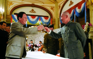 雖只有一場戲、三句臺(tái)詞,但身著深藍(lán)色軍裝的李連杰依然一絲不茍地拍了不下5條。據(jù)李連杰介紹,他扮演的陳紹寬原是國民黨海軍上將,在抗日戰(zhàn)爭中立下汗馬功勞,但不愿參加內(nèi)戰(zhàn),“中國人打中國人?這事我做不得”,最后向蔣介石遞交辭呈,“卸甲歸田,回福建養(yǎng)老去”。李連杰片酬高達(dá)上千萬美元,但零片酬參與該片一方面是感謝中影集團(tuán)長期對壹基金的支持,另外一方面他也認(rèn)為“陳紹寬反戰(zhàn)挺像我的,我也是個(gè)愛好和平的人!绷硗,他還透露《建國大業(yè)》上映后,每張電影票將有1分錢進(jìn)入壹基金。