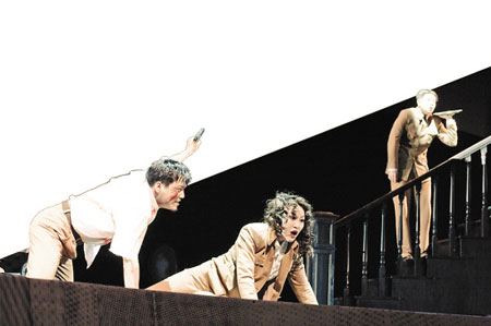 相比之下,在表現(xiàn)四個嫌疑人之間勾心斗角的某些橋段中,舞蹈就比打斗來得詼諧許多。有一段,其余三人一邊扭著好玩的倫巴,一邊卻在拼命詆毀吳志國:“吳部長干嘛去了?人家是部長,官高一級壓死人嘛!”記者 陳宇浩