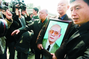 上午9時(shí)40分,遲重瑞、六小齡童和馬德華攜花圈來(lái)到現(xiàn)場(chǎng)。聚集在廣場(chǎng)上的影迷和記者立即將3人團(tuán)團(tuán)圍住!八研蕹山鹕砹_漢,并將永遠(yuǎn)留在喜愛(ài)他的觀眾心里!绷↓g童激動(dòng)地說(shuō)。