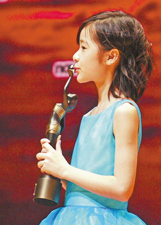 來(lái)到后臺(tái)采訪室,徐嬌已經(jīng)非常適應(yīng)這種“大場(chǎng)面”,一連換了4個(gè)姿勢(shì)拍照,說(shuō)到在臺(tái)上的感謝詞,徐嬌說(shuō):“這些話是昨天晚上媽媽教我說(shuō)的,她讓我像《長(zhǎng)江七號(hào)》的臺(tái)詞一樣,說(shuō)如果得獎(jiǎng)了,就說(shuō)得了一百分。不過(guò)這些話也是我想說(shuō)的!敝劣谥苄邱Y,徐嬌說(shuō):“我拿了獎(jiǎng)之后就來(lái)了,還沒(méi)來(lái)得及打電話給周老爸,晚上我會(huì)打電話給他,聽(tīng)他說(shuō)怎么慶祝。”