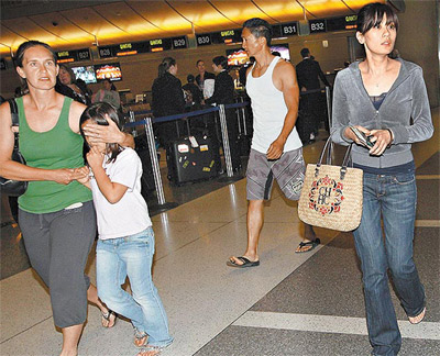 賈靜雯由堂哥、堂嫂和小侄女送到機場,她一臉?biāo)仡、略顯憔悴,穿著灰色運動帽T、牛仔褲跟夾腳拖鞋,弟弟韋斯利因工作已先行返臺。她見記者守候在機場有些訝異,但很快就恢復(fù)鎮(zhèn)定對記者說:“你們辛苦了!比缭敢姷脚畠旱乃f:“我終于可以放心地好好睡覺了。”