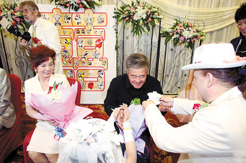 婚禮顯得十分節(jié)儉,選擇在一家四星級酒店舉行,筵開10席,只邀請了包括趙本山在內(nèi)的親朋好友,連新娘子的化妝都是由贊助商“買單”。在婚禮現(xiàn)場,一對新人的婚紗照被做成真人大小的展架,其中既有經(jīng)典的西裝婚紗照,也有頗具中國傳統(tǒng)風(fēng)格的大紅喜服裝束。據(jù)了解,博比·肯出生在烏克蘭一個藝術(shù)世家,2001年,他在電視上看了趙本山的小品,“被其深厚的藝術(shù)功底所折服”,通過熟人介紹,正式拜趙本山為師。博比·肯表示,他1992年來到中國,立刻被這里古老的文明所吸引,因此,他一早就與新娘張雯婷達(dá)成了共識:“我們要辦一個地地道道的中式婚禮!