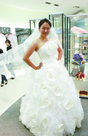 雖然因為拍戲很勞累,愛人也不在身邊,但是沈傲君試起婚紗來還是幸福洋溢,當(dāng)天共試了十幾套婚紗,有中式的、西式的,沈傲君試得不亦樂乎,身邊的陪同人員也都大贊“好漂亮”。沈傲君似乎對一身裙擺上布滿玫瑰花的婚紗最為滿意,更擺出了叉腰的pose,而網(wǎng)友們也認(rèn)為沈傲君穿這件婚紗最為漂亮,不過網(wǎng)友們也發(fā)現(xiàn)了一些問題,“沈傲 君怎么黑了?”“手臂看上好強壯呀!痹瓉,沈傲君 在新戲中飾演一名美女教練, 有很多特訓(xùn)和打球的戲份,就在她來試婚紗前,她還和劇中的另一教練在網(wǎng)球場上,頂著烈日比賽做了上百個仰臥起坐。而平時,她必須在烈日當(dāng)空的球場上不停奔跑、揮棒,帶領(lǐng)隊員做各類體能特訓(xùn)。幾天下來沈傲君手臂、后背都是一道道打球留下的淤青和傷痕,因為長期在陽光的暴曬下,整個人也曬黑了,看到自己手臂和背部留下的淤青和傷疤,沈傲君忍不住叫苦。