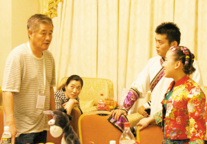 很少能看到趙本山和小沈陽(yáng)同臺(tái)表演,這次海南之行的首場(chǎng)演出,恐怕也是“劉老根大舞臺(tái)笑轉(zhuǎn)2009”全國(guó)巡演中唯一一場(chǎng)本山師徒同臺(tái)的表演,因?yàn)橛^眾是參加博鰲論壇的國(guó)際政要和經(jīng)濟(jì)專(zhuān)家。在演出后臺(tái),本山首先演練了一遍即將在舞臺(tái)上表演的“吹拉彈唱”,隨后就開(kāi)始對(duì)自己的徒弟一一評(píng)點(diǎn)。別看徒弟們個(gè)個(gè)在舞臺(tái)上精神抖擻,但在面對(duì)如此大場(chǎng)面時(shí)不免有些緊張,紛紛對(duì)師父說(shuō)出自己的顧慮!皠e緊張,就當(dāng)是在咱們沈陽(yáng)中街基地演了!”“你這個(gè)口我看可以使,沒(méi)關(guān)系,出了事我兜著!薄澳阒虚g的那一段就不要加了,不好,不文雅。”面對(duì)徒弟,本山嚴(yán)肅認(rèn)真地對(duì)他們的表演提出要求。因?yàn)閷?duì)徒弟的表演和絕活爛熟于心,本山三言?xún)烧Z(yǔ)就指出了他們的不足,并且提出了建議。有了他的點(diǎn)撥,徒弟們個(gè)個(gè)信心十足地走上了舞臺(tái)……