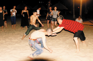 生活中的趙本山究竟是什么樣子,是小品《賣(mài)拐》中的大忽悠,還是電視劇《劉老根》中的睿智老漢?是電影《落葉歸根》中的質(zhì)樸農(nóng)民工,還是有著上億家產(chǎn)的娛樂(lè)巨鱷?雖然我們很難界定趙本山在演藝圈中的不同身份,但可以肯定的是,他在生活中和在舞臺(tái)上一樣,演繹著不同環(huán)境下的不同形象。日前,新報(bào)記者作為唯一隨行記者,見(jiàn)證了趙本山率“劉老根大舞臺(tái)笑轉(zhuǎn)2009”演出班底海南巡演的過(guò)程,感受到感性真實(shí)的“多面本山”。