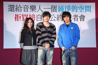 臨時知道要出席這個活動的周杰倫,雖然抱病也堅持到場,他在記者會上再次呼吁大家給音樂一個誠實的空間,這樣才能激勵藝人做出最好的音樂。他說,以前的唱片隨隨便便就能賣到二三十萬張,但近些年來唱片業(yè)一直下滑。眾所周知,盜版和買榜是唱片業(yè)的兩大心魔,大家要一起努力,還給音樂一個純凈空間。他還風(fēng)趣地說,有錢不用買榜,可以去買車。而新力音樂旗下藝人王力宏由于昨日凌晨突發(fā)急性腸胃炎無法到場,他委托公司的大中華區(qū)總裁崔震東代發(fā)聲明,表示娛樂圈的良性競爭是好事,不應(yīng)該用買榜這種不誠實的方式,“我的唱片公司在(去年)12月31日告訴我,唱片圈買榜風(fēng)氣盛行,新力音樂決定不買榜,公司要我有心理準(zhǔn)備,這次的專輯雖然是銷售冠軍,但不會是排行榜的第一名。我當(dāng)時告訴公司,我支持公司不買榜的行動!庇浾 李懿