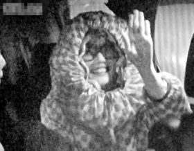 記者當(dāng)晚途經(jīng)灣仔春園街明星食肆“佳文魚生”,當(dāng)時(shí)餐廳的卷簾門已經(jīng)拉下一半,突然一輛七人車在餐廳門口停下,只見穿著灰色衣服的何韻詩(shī)下車閃身進(jìn)入店內(nèi),隨后還有何爸爸及何媽媽。當(dāng)記者試圖尋找何韻詩(shī)一家的下落時(shí),立即有工作人員阻止記者拍照,并將卷簾門拉低。大約3個(gè)小時(shí)后,一名男子率先離開餐廳,緊隨其后的是一名用紅色方格頭巾遮住頭部的神秘人,旁邊則是容祖兒助手,而在門口也停著容祖兒的七人車,神秘人的身份一猜便知。容祖兒步出門口時(shí)發(fā)現(xiàn)記者,情急中竟像沒頭蒼蠅一樣撞向卷簾門,痛得大叫“哎呀”。