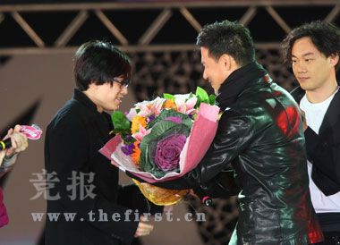 作為香港樂壇四大頒獎(jiǎng)禮的最后一張成績單,“十大中文金曲”頒獎(jiǎng)禮終于在上周末為2008年熱鬧、煩擾、紛爭的香港樂壇畫上了句號(hào)。此前憑借《喜帖街》在各大頒獎(jiǎng)禮掃獎(jiǎng)杯14座的謝安琪繼續(xù)保持強(qiáng)勁勢頭,不僅獲得“十大中文金曲”,更拿到了分量最重的傳媒大獎(jiǎng)(四大頒獎(jiǎng)禮上獲獎(jiǎng)最多的歌手),一舉打破獲得該獎(jiǎng)項(xiàng)的最快紀(jì)錄而成為當(dāng)晚最大贏家,F(xiàn)場最多的掌聲則是來于獲得“金針獎(jiǎng)”的林夕,他笑稱領(lǐng)到這個(gè)“終身成就獎(jiǎng)”是逼自己退休。而后張學(xué)友意外現(xiàn)身上臺(tái)獻(xiàn)花,演唱林夕金曲《有病呻吟》,并率眾歌手向其致敬,成為全場焦點(diǎn)。