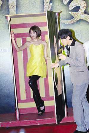 《大灌籃》取得商業(yè)上的成功后,這部電影的主創(chuàng)陣容周杰倫、朱延平等又將開拍一部新電影《刺陵》。昨日該片在北京舉行新聞發(fā)布會,現(xiàn)場男主角周杰倫一展魔術(shù)技藝,大變活人,變出光彩鮮亮的女主角林志玲。
