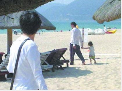 前日,有網(wǎng)友在論壇上貼出李亞鵬、王菲及愛女李嫣等人在三亞海灘游玩的圖片,照片中的王菲一家,相處融洽。李亞鵬拉著李嫣走到海邊,一副慈父模樣(見下圖)。(成風(fēng))
