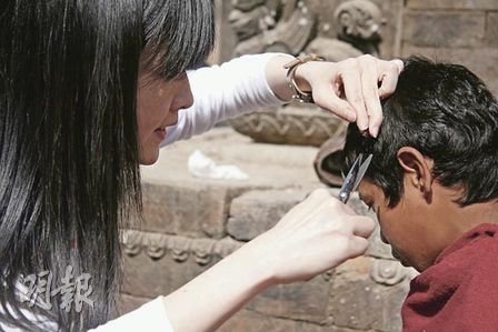 中新網(wǎng)2月10日電 據(jù)香港《明報(bào)》報(bào)道,“饑餓之星”周慧敏、蔡卓妍與張敬軒探訪尼泊爾貧窮村莊,了解當(dāng)?shù)丶彝サ纳顮顩r!澳咛敝芑勖魫坌谋铮c孩子相處母愛大發(fā),親自為她助養(yǎng)的孩子剪頭發(fā)。
