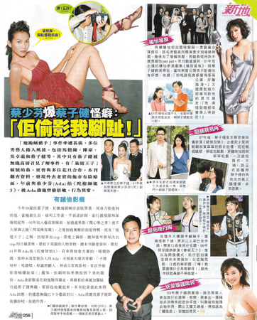 今年39歲的蔡子健,進(jìn)入演藝圈之前曾當(dāng)過救生員、福利工作者、平面設(shè)計(jì)師、旅行團(tuán)領(lǐng)隊(duì)和保險(xiǎn)經(jīng)紀(jì)等,1993年加入無線藝員訓(xùn)練班,拍完情景劇《開心華之里》后不久便被調(diào)去主持《閃電傳真機(jī)》節(jié)目,之后拍過無數(shù)旅游特輯,故有“旅游王子”之稱。因經(jīng)常出差,他愛上攝影。據(jù)資料顯示,2001年,蔡子健與蔡少芬合拍《陀槍師姐3》時,兩人演夫妻拍一場婚紗戲。當(dāng)時蔡少芬不經(jīng)意地大爆蔡子健的怪癖:“子健人不錯,很懂得照顧人,還整天幫我照相,有一次還偷拍我的腳趾!”據(jù)知,拍劇時,蔡少芬經(jīng)常貪舒服穿著拖鞋到處走,其修長的美腿和腳趾引起蔡子健的興趣,所以拍下來作收藏。近日,記者就此事詢問蔡少芬,但據(jù)悉無線已下令藝員“封口”,蔡少芬對關(guān)于蔡子健的問題立即裝聾扮啞,拒絕作答。