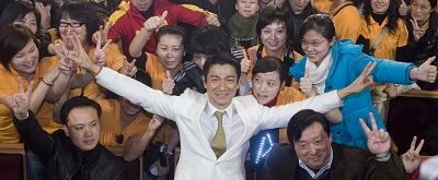 華仔天地”內(nèi)地首個分會——上!叭A仔天地” 影音文化發(fā)展促進會成立大典昨日在上海東方藝術(shù)中心舉行,“大家長”劉德華乘坐“Andy World Club”巴士亮相與FANS互動,現(xiàn)場高潮迭起。被FANS親切稱為老大的他變起魔術(shù)像模像樣,戲言“干脆我以后去當(dāng)魔術(shù)師吧”。在接受采訪時,劉德華還透露自己確實曾跟寶島魔術(shù)師劉謙學(xué)藝,有望于一年后與周杰倫合作一部“魔術(shù)”電影。對于日前盛傳他將以與阿嬌同拍電影的方式支持晚輩復(fù)出一事,劉德華表示自己的確會支持阿嬌復(fù)出,但目前還沒有實際的計劃。