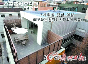 據(jù)職員透露,金某招待客人的場所一般是在企劃室一層的紅酒吧,不過有時還會用到3層以及外部的空間。接受招待的一般是電視臺的導(dǎo)演和電影制作人以及政、經(jīng)界的人物,而參與招待的大部分是經(jīng)紀(jì)公司的女演員。據(jù)悉,3層是由房間和涼臺構(gòu)成,房間是按照酒店一樣裝修的,浴室和寢室都具備,房間和涼臺是相連的。酒會和生日派對一般都在這里舉行。