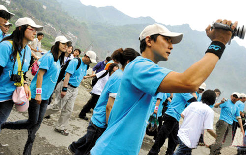 到了牛眠溝終點(diǎn)后,眾明星紛紛跟隨李連杰登上之前已搭好的舞臺(tái),完成最后的儀式。來自映秀的羌族婦女為李連杰掛上了蘊(yùn)含著祝福之意的羌紅。這時(shí),主持人宣布當(dāng)天共有一百萬(wàn)網(wǎng)民通過網(wǎng)絡(luò)進(jìn)行了虛擬行走,以此支持“壹家人,壹起走”活動(dòng),并現(xiàn)場(chǎng)成立了“志愿聯(lián)盟”。最后,在李連杰的帶領(lǐng)下,全場(chǎng)200多人默哀一分鐘,以表示對(duì)逝者的懷念。(王尚)