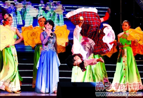 孫麗榮和蘇小龍的老太太倒追小帥哥的段子也笑料百出,孫麗榮扭曲走步法、跳大神和背地名堪稱一絕,追帥哥更是追到了舞臺(tái)下,最后擁抱了某位男觀眾才心滿意足上臺(tái)。本報(bào)觀劇團(tuán)特別填寫了調(diào)查報(bào)告,報(bào)告顯示有47%的觀眾認(rèn)為小沈陽的師兄弟“很出色,不比小沈陽差,只是缺少機(jī)會(huì)!