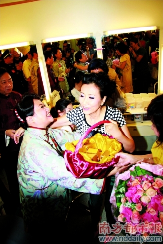 昨日下午2時(shí)許,位于無線電視城內(nèi)的記者會(huì)現(xiàn)場(chǎng)喜氣洋洋,紅綢和鮮花把“恭賀汪明荃結(jié)婚之喜”的嫁女儀式裝扮得異常溫馨。伴隨著羅家英先行錄好的搞笑旁白:“講到女人,唉,都完全沒有感覺!但提起下面這一位,我個(gè)心就甜曬。”阿姐甜笑著隆重現(xiàn)身。