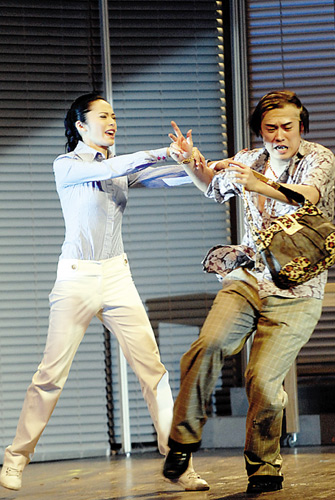 對策:在一年一度的公司評估會上,拉拉認(rèn)清事實,選擇與玫瑰正面PK。她運用SWOT分析法[SWOT是一種分析方法,用來確定企業(yè)或自身的競爭優(yōu)勢(strength)、競爭劣勢(weakness)、機會(opportunity)和威脅(threat),從而采取的具體戰(zhàn)略與策略。]得到上司的信任,最后把玫瑰趕出公司。話劇通過歌舞的形式體現(xiàn)了二人的明爭暗斗。