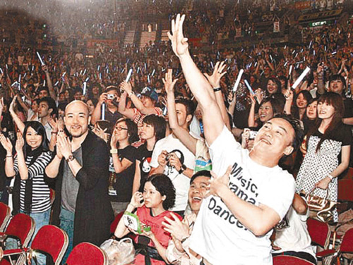 五月天“2009DNA世界巡回演唱會(huì)”連續(xù)三天“唱爆”香港紅館,不僅座無(wú)虛席,連華語(yǔ)樂(lè)壇歌王陳奕迅也甘當(dāng)歌迷。