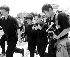 此時東大廳門口已經(jīng)擠滿了人,央視印制的悼念羅京生平的印刷品很快就分發(fā)一空。除了北京的群眾,還有來自東北、山西太原、浙江溫州等地的熱愛羅京的觀眾,比如來自溫州的一家三口,聽說羅京去世的消息就立即動身來到北京。在307醫(yī)院的靈堂悼念后,又來到八寶山送羅京最后一程。還有王東宏先生,他是羅京在酒仙橋二中的同學(xué),也是;@球隊的隊友,曾經(jīng)合力獲得了北京市中學(xué)生籃球比賽亞軍。雖然多年失去聯(lián)系,但是聽說羅京去世后還是特意來到八寶山送別羅京。