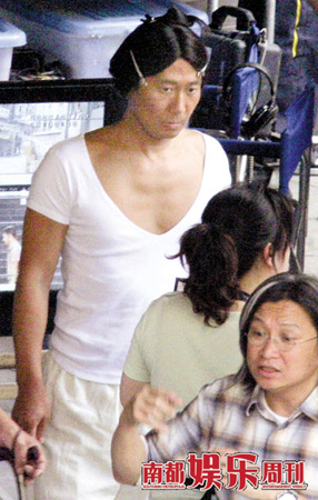 在《十月圍城》中,黎明放下天王巨星的架子,扮演一名乞丐,也是“六義士”之一。乞丐已經(jīng)是一個(gè)夠倒霉的角色了,沒想到片場(chǎng)休息,黎明把假發(fā)一梳弄,竟成了驚世駭俗的天王級(jí)“如花”,不過據(jù)說扮丑很容易拿影帝,黎明顯然是下定決心不怕犧牲了,剛剛出演過梅蘭芳的粉面就直接被化妝師糟蹋成黑臉,還特別給這位沒錢理發(fā)的乞丐先生留了一頭換七八糟的長(zhǎng)發(fā)。長(zhǎng)發(fā)未免有點(diǎn)熱,黎天王倒也挺能應(yīng)付,脫了戲服穿件“老頭衫”,還用兩個(gè)發(fā)卡把頭發(fā)梳弄上去,有利散熱。攝影師的長(zhǎng)鏡頭在片場(chǎng)找了很久,才終于在導(dǎo)演棚里找到了“黎如花”。