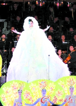 一向給人端莊印象的宋祖英,此次在演出中也換上了六套華服,每一套都可以用“驚艷”來形容。這幾套禮服將中國元素運(yùn)用得淋漓盡致,造型師還罕見地在頭飾上做了不少變化,為她增添了不少活潑之氣。據(jù)悉,這些服裝是中國、意大利、法國、日本等國際頂級設(shè)計(jì)師聯(lián)合制作的。