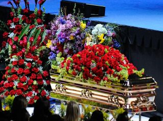 “今日新聞“消息,杰克遜的私人葬禮當(dāng)?shù)貢r間7日在洛杉磯舉行,流行天王的棺木造價高達(dá)2萬5千美元,在銅棺上鍍了14K金,上面覆蓋大紅色的鮮花。不過即使舉行過葬禮,依舊謠言四起,有傳聞?wù)f杰克遜的遺體根本不在棺木里,一名電視臺記者報導(dǎo),“我只說這是棺木,因為遺體在不在里面?目前還不確定!