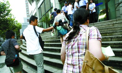 上午8點,距離開庭時間還有1小時,記者在靜安法院門口看到,多名法警已經(jīng)在門口維持秩序!捌綍r8點半上班,今天都提前來了。 ”一名工作人員告訴記者,為了這次開庭,法院做了充分準備,并購置了多臺設(shè)備。