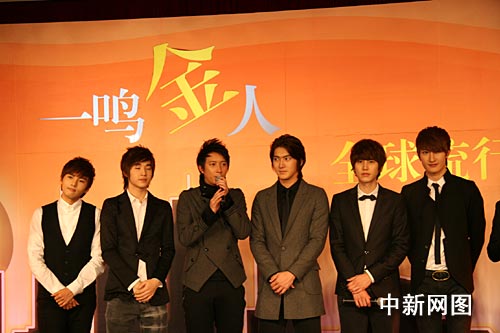 中新網(wǎng)11月16日電 (李季) 16日下午,來自馬來西亞的光良、韓國組合Super Junior—M、港臺藝人張韶涵、蕭亞軒、信和內(nèi)地明星張杰、江映蓉在北京出席“一鳴金人—全球流行音樂金榜新聞發(fā)布會”,眾星紛紛為此活動獻上自己為精心準備的各種“金色”賀禮。