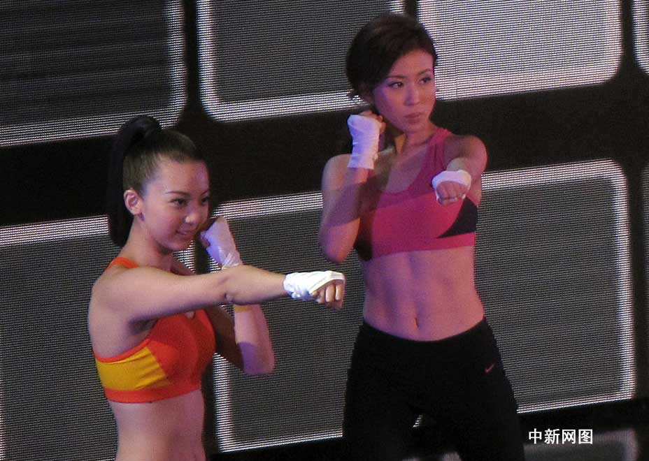 圖為參賽佳麗表演活力四射的泰拳健身舞。(攝影:余瑞東)