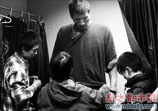 巴特爾的加盟一下讓劇組“如臨大敵”,除了趕緊訂購(gòu)大床外,化妝組還為他連夜試妝,定做了數(shù)套衣服。但試妝過(guò)程還是困難連連,因?yàn)榘吞貭枌?shí)在太高,化妝師的身高往往只到他的腰間。巴特爾也是非常“緊張”,擔(dān)心把劇組的椅子坐壞,把化妝品用完:“我這樣的你們不是要用兩倍的化妝品?”