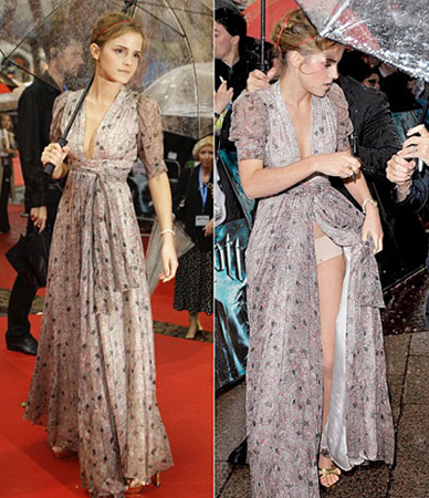 以往大家對《哈利·波特》的關(guān)注都集中在丹尼爾·雷德克里夫身上,如今,“赫敏”的扮演者英國小美女艾瑪已經(jīng)長得亭亭玉立,吸引了全部的目光。低胸碎花長裙將她襯托得嫵媚動人。但她顯然沒有預(yù)料到在為粉絲的照片簽名時,呼呼大作的風(fēng)會讓她裙擺下的大腿春光乍現(xiàn)。