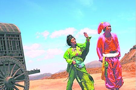 《三槍》主演花花綠綠的裝扮相當(dāng)惹眼,原來是張藝謀有意為之,“我想的徹底是鮮艷的,要讓人看了就炸起來那種(感覺),完全不要按常規(guī)去想,咱先弄強烈,再往回收好辦!彼滓彩强桃庾非,“這個綠是水綠,果綠,就是俗一點……顯得廉價了一點,就百家衣,跟萬民傘似的,很刻意,要這種自由拼貼!