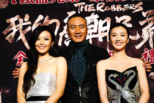 昨日下午,定位為“古裝暴力喜劇”的電影《我的唐朝兄弟》在北京舉行首映式。男主角之一的姜武因?yàn)橐s拍兄弟姜文的新片《為子彈飛》而缺席,另一位男主角胡軍趁機(jī)大享齊人之福,摟著兩位美女主演王曉和于小磊走過紅地毯。