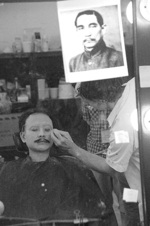 《十月圍城》開機以來,孫中山的人選一直是劇組的高度機密,化妝間只有監(jiān)制、導演、特技造型師和助理可以進,別的人統(tǒng)統(tǒng)都被關在外面。拍戲時,通告單上都要寫清楚演員名字,但一旦拍到孫中山的戲份,通告單上只有“孫中山”三個字。