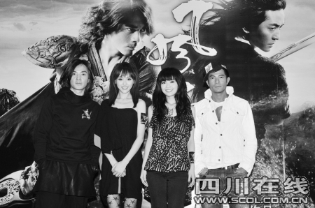 相比郭富城的一本正經(jīng),鄭伊健很會(huì)增加訪問(wèn)的喜劇氛圍,不斷地和身邊的阿Sa開玩笑,“嗯,以前我都是把她當(dāng)哥們,沒(méi)有一點(diǎn)女人味,這回演《風(fēng)云2》,她終于有那么一點(diǎn)點(diǎn)女人味了。”一席話令阿Sa羞得滿臉通紅:“反正他一直把我當(dāng)?shù)艿芑蛘呙妹美,他很壞的,有一次買了一臺(tái)手機(jī),向我大力推薦,其實(shí)對(duì)于這種高科技的東西,我一向比較白癡,結(jié)果我買回來(lái)不會(huì)用,一個(gè)星期后只好放棄,再也沒(méi)用過(guò)!闭f(shuō)得旁邊的鄭伊健又大笑起來(lái)。阿Sa還抱怨自己《風(fēng)云2》中的對(duì)白太少,“只說(shuō)了大概6次的‘風(fēng)哥哥’和1次‘云哥哥,你別打了’,我希望下次導(dǎo)演能拍個(gè)女版《風(fēng)云》,讓我和唐嫣也能成為真正的主角,巾幗不讓須眉嘛”。阿Sa還表示,自己一定會(huì)去給鄭伊健的演唱會(huì)捧場(chǎng),”我買了5張票,因?yàn)樗俏业拇罄?大哥)啊!