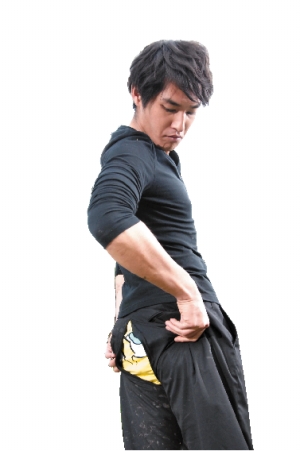 藍(lán)正龍?jiān)趧≈酗椦葜麅尚宰骷蚁暮徒,因(yàn)榇篝[電影首映會(huì),被判到幼兒園服158個(gè)小時(shí)的勞動(dòng)役。為了幫小朋友撿布偶,他爬到樹上,沒想到不慎失足,樹枝勾住褲子,狼狽不堪地倒栽蔥掛在樹上(右上圖)。這場戲雖然只有短短的幾分鐘,卻足足拍了9個(gè)小時(shí)。藍(lán)正龍表示,以前拍廣告時(shí)曾有吊鋼絲的經(jīng)驗(yàn),但倒吊卻是第一次,“倒吊的時(shí)候,頭有點(diǎn)昏昏的,而且讓我真的體會(huì)到什么是眼冒金星!钡钭屗y為情的是,“得在鏡頭面前露出海綿寶寶內(nèi)褲,讓我有點(diǎn)小尷尬!