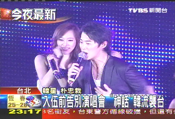 據(jù)臺(tái)灣TVBS報(bào)道,樸忠栽用中文對(duì)歌迷喊出:“我愛(ài)你!”他當(dāng)兵前在臺(tái)灣的最后一次演唱會(huì),可以說(shuō)是卯足了勁,就怕一當(dāng)兵會(huì)被歌迷遺忘。