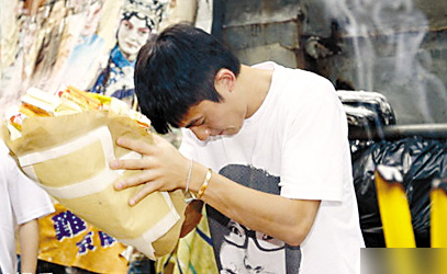 7月11日晚上7時,阿嬌抵達哈爾濱參加嘉年華活動。她出機場時頭戴禮帽,面戴口罩,二十多名貼身保鏢護駕。她身穿一件印有墨色男人頭像的大T恤,無獨有偶,陳冠希7月10日在香港出席陸永“棟篤笑”演出拜神儀式時,也穿著同款式T恤———這對舊情人真是心有靈犀!