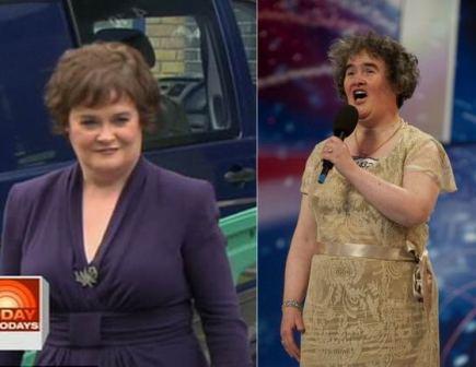 臺灣“今日新聞”報道,當(dāng)畫了濃妝、染上頭發(fā)的蘇珊大嬸,穿著一襲紫色連身裙裝出場時,觀眾驚叫連連,連女主持人Meredith Vieira都瞪大眼睛問:你怎么了?蘇珊大嬸笑笑說自己只是在臉上擦了一點(diǎn)東西,她學(xué)化妝可是學(xué)得很快的。