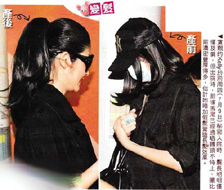不僅身材十分苗條,還有港媒注意到,7月9日Kelly入院待產(chǎn)那天,頭發(fā)僅僅到肩膀的位置,但等到6天后出院時,束起的馬尾明顯長過肩頭很多,而且頭發(fā)也顯得比入院那天濃密不少,有指Kelly愛美到了一個極限,連頭發(fā)都要加假發(fā)做好造型。