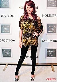 目前在美國10多個城市及加拿大都可看到“72變”,最快明年進軍內(nèi)地、新加坡、馬來西亞市場,她昨天被問臺灣地區(qū)何時可買到“72變”服飾,笑說:“還不知道,我比任何人都希望越快越好!弊蛱飕F(xiàn)場展示她設(shè)計的1千件限量T恤,1件約1500元臺幣,當(dāng)場被搶購一空,為公司進帳臺幣150萬元。