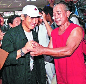 李連杰8月13日起帶著物資深入臺灣災區(qū),為備受超級臺風莫拉克摧殘的臺灣中南部災民及義工打氣。前日他繼續(xù)探訪災區(qū),有災民向他哭訴:“我家全沒了!”李連杰趕緊握住他的手給予安慰,場面感人。不過也有輕松的時候,李連杰所到之處,大批災民和義工均蜂擁上前看熱鬧,許多年輕女義工更是尖叫著將他團團圍住,李連杰只能笑說:“這么圍著,我怎么探望災民啊!