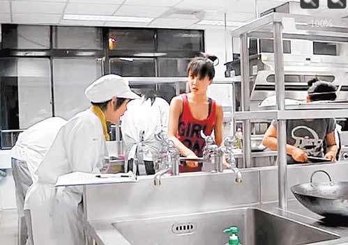 中新網8月18日電 最近,蔡依林(Jolin)在臺灣餐飲學校學烹飪的消息曝光,時隔1周,小天后準時到學校報到。她在廚房里身穿緊身低胸背心,認真做菜,切菜擺盤有模有樣,不時還跟身旁的老師請教:“所以是這樣弄喔?”神情認真。