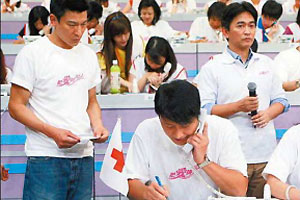 據(jù)“聯(lián)合早報(bào)”消息,香港演藝圈為了幫助臺(tái)灣受災(zāi)民眾盡快重建家園,積極動(dòng)員,與臺(tái)灣藝人聯(lián)手舉辦《88水災(zāi)關(guān)愛(ài)行動(dòng)》。劉德華水災(zāi)后第一時(shí)間飛抵臺(tái)灣賑災(zāi),返港后更是召集200位藝人,趕工錄制“88水災(zāi)關(guān)愛(ài)行動(dòng)”主題曲《滔滔千里心》。擔(dān)任總召的他,一下飛機(jī)便直奔活動(dòng)現(xiàn)場(chǎng),強(qiáng)打精神緊盯各個(gè)環(huán)節(jié),不但親手寫(xiě)大字報(bào),更扯破喉嚨指揮全場(chǎng)。